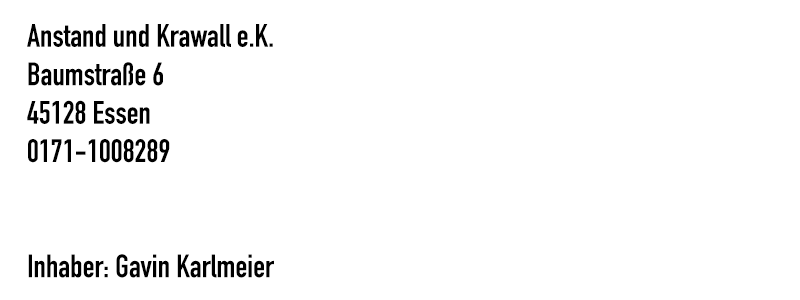 Der Nutzung von im Rahmen der Impressumspflicht veröffentlichten Kontaktdaten durch Dritte zur Übersendung von nicht ausdrücklich angeforderter Werbung und Informationsmaterialien wird hiermit ausdrücklich widersprochen. Die Betreiber der Seiten behalten sich ausdrücklich rechtliche Schritte im Falle der unverlangten Zusendung von Werbeinformationen, etwa durch Spam-Mails, vor.